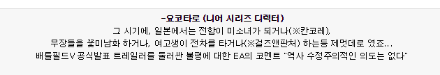 [http://bbs.ruliweb.com/ps/board/300001/read/2161502 배틀필드 V에서의 변경점 정리] | [http://bbs.ruliweb.com/ps/board/300001/read/2161502 배틀필드 V에서의 변경점 정리] | ||