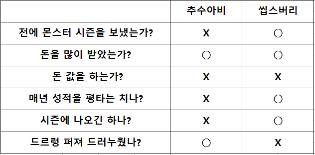| Franchise | 킹랄 · 심장 · 붕가옹 · 빵형 · 짐승 · 마당쇠 · 아트스윙 · 정권브이 · 악마의 투심 · 강철허리 · 가을동화 · 야, 형이야. · 초대에이스 · 봄털 |