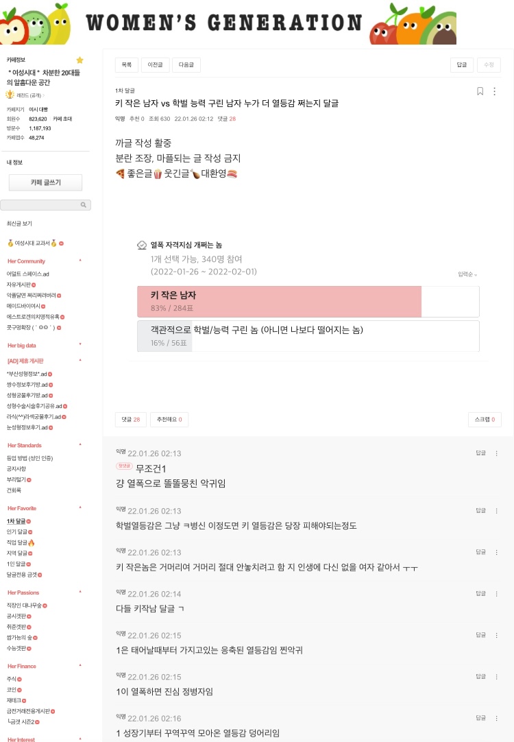 [https://archive.fo/3zECB 외적으로 키 작은 것보다 최악은 뚱뚱한 것 밖에 없다.(제목)][https://archive.fo/CSc4R 댓글1][https://archive.fo/nFuMr 2][https://archive.fo/QqOdS 3][https://archive.fo/h9sEC 4][https://archive.fo/9vruI 5][https://archive.fo/rxpKR 6][https://archive.fo/vH3ND 7][https://archive.fo/XqIen 8][https://archive.fo/o9mE7 9][https://archive.fo/fsGuw 10][https://archive.fo/HbkVg 11][https://archive.fo/xuEKF 12][https://archive.fo/pTiBs 13][https://archive.fo/SEB2T 14][https://archive.fo/L5UUn 15][https://archive.fo/25d9P 16][https://archive.fo/9lcdZ 17][https://archive.fo/NSvRp 18][https://archive.fo/3O96a 19][https://archive.fo/WdNWX 20][https://archive.fo/dc7cp 21][https://archive.fo/FYqDQ 22][https://archive.fo/mA4iE 23][https://archive.fo/Qo2KM 24][https://archive.fo/UzGNy 25][https://archive.fo/byZ20 26][https://archive.fo/2UYS6 27][https://archive.fo/65CVS 28][https://archive.fo/PNAB4 29][https://archive.fo/U0TFx 30][https://archive.fo/d5wWn 31][https://archive.fo/TFvAu 32][https://archive.fo/RhsuK 33] | [https://archive.fo/3zECB 외적으로 키 작은 것보다 최악은 뚱뚱한 것 밖에 없다.(제목)][https://archive.fo/CSc4R 댓글1][https://archive.fo/nFuMr 2][https://archive.fo/QqOdS 3][https://archive.fo/h9sEC 4][https://archive.fo/9vruI 5][https://archive.fo/rxpKR 6][https://archive.fo/vH3ND 7][https://archive.fo/XqIen 8][https://archive.fo/o9mE7 9][https://archive.fo/fsGuw 10][https://archive.fo/HbkVg 11][https://archive.fo/xuEKF 12][https://archive.fo/pTiBs 13][https://archive.fo/SEB2T 14][https://archive.fo/L5UUn 15][https://archive.fo/25d9P 16][https://archive.fo/9lcdZ 17][https://archive.fo/NSvRp 18][https://archive.fo/3O96a 19][https://archive.fo/WdNWX 20][https://archive.fo/dc7cp 21][https://archive.fo/FYqDQ 22][https://archive.fo/mA4iE 23][https://archive.fo/Qo2KM 24][https://archive.fo/UzGNy 25][https://archive.fo/byZ20 26][https://archive.fo/2UYS6 27][https://archive.fo/65CVS 28][https://archive.fo/PNAB4 29][https://archive.fo/U0TFx 30][https://archive.fo/d5wWn 31][https://archive.fo/TFvAu 32][https://archive.fo/RhsuK 33] | ||