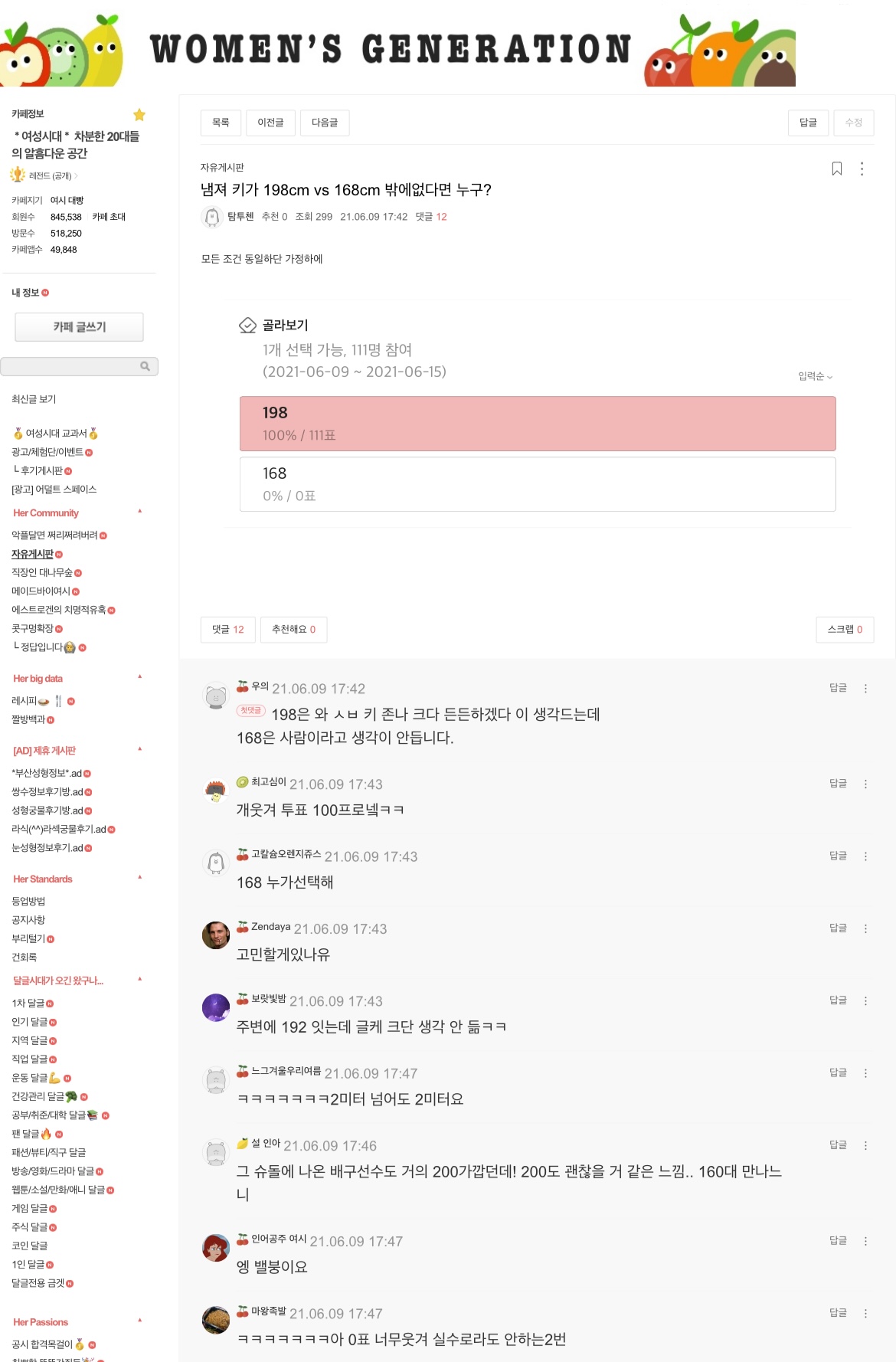[ | [https://archive.md/FnXJR 한국인들이 가장 원하는 키는 남자는 187cm, 여자는 168cm로 나타났다.] (2003년 기준, 187-168음료참고) | ||