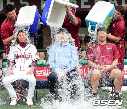 http://imgnews.naver.net/image/109/2014/08/26/201408261620779017_53fc35e2a3547_99_20140826162417.jpg?width=500 결국 2014년 8월 26일, [염경엽] 감독과 [이택근]과 함께 나란히 아이스 버킷 챌린지 수행완료. 영상 다음 주자로는 양해영 KBO 총장, ~~넥센 히어로즈의 팬임을 방송에서 인증한~~ YTN 호준석 앵커, 앨러드 배어드 [보스턴 레드삭스] 부사장을 지목했다.