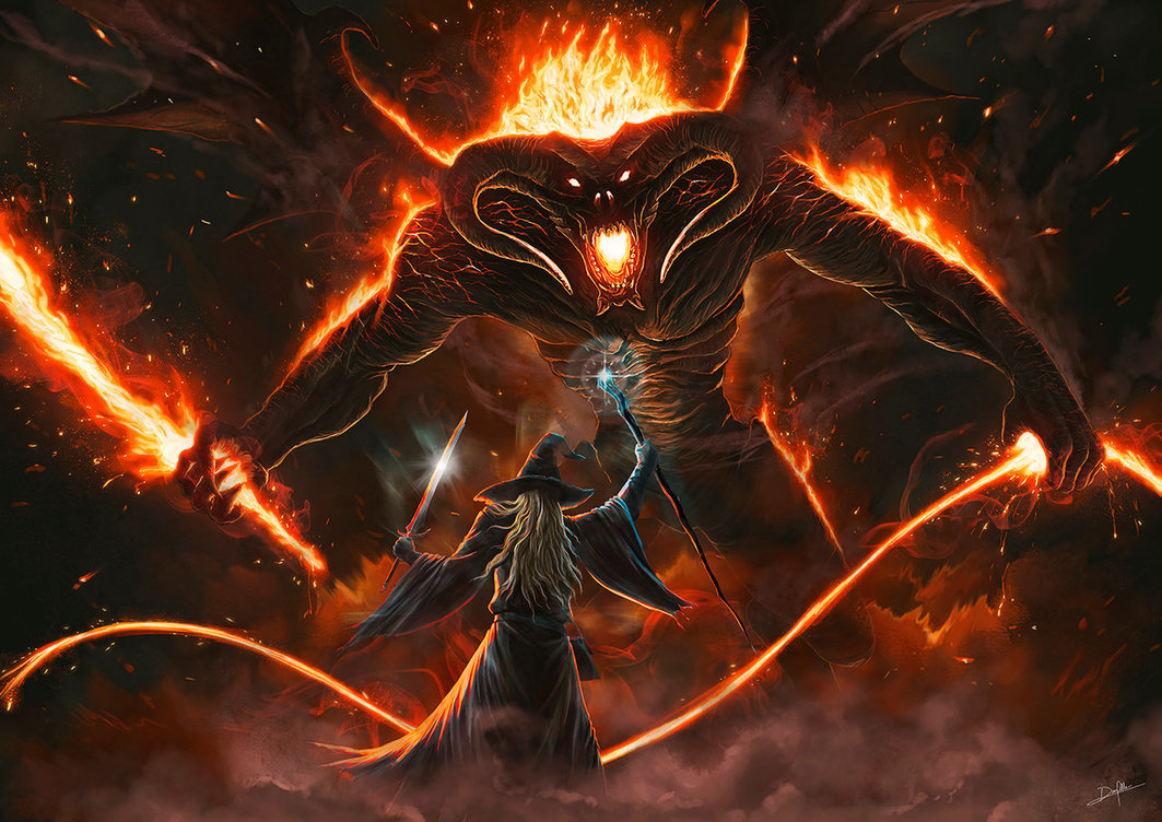 Balrog. 신적존재로 원래는 불과 화염의 수호신이였으나, 타락해서 악마가 되어 짤방같은 괴물이 되었다.