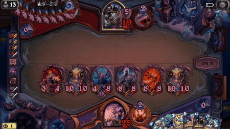 단돈 6코에 니 전설 하수인이 사적놈의 덱 속으로 들어가는 모습을 볼 수 있다.