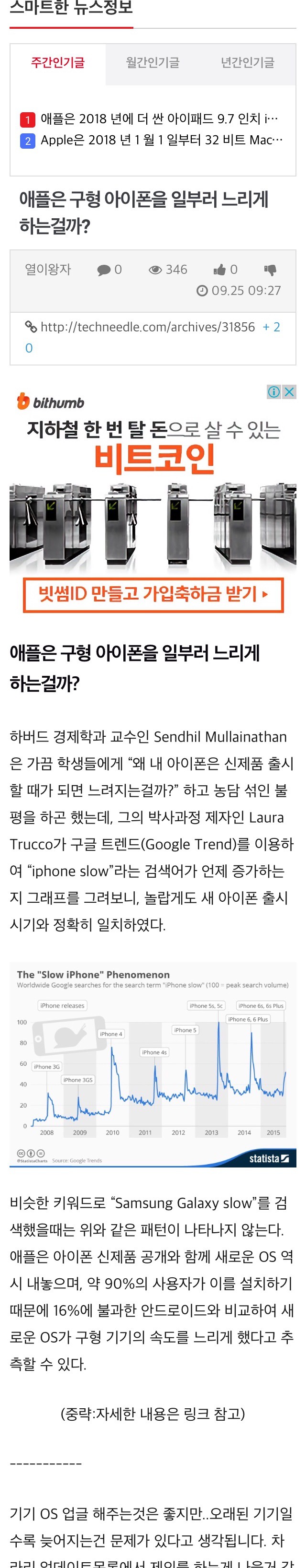 참고로 아이폰4s를 사용하는 수천명의 사용자들은 느려졌다는 이유로 애플을 고소했다