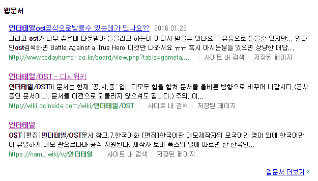 2017년 3월 18일자로 좆무위키만 상위노출 시켜주던 게이버가 디시위키 언텔 OST항목을 잠시나마 상위노출 시켜줬다.