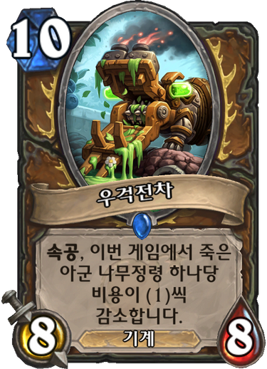 10코 8/8 기계, 속공, 이번 게임에서 죽은 나무정령 하나당 비용이 (1) 감소합니다.