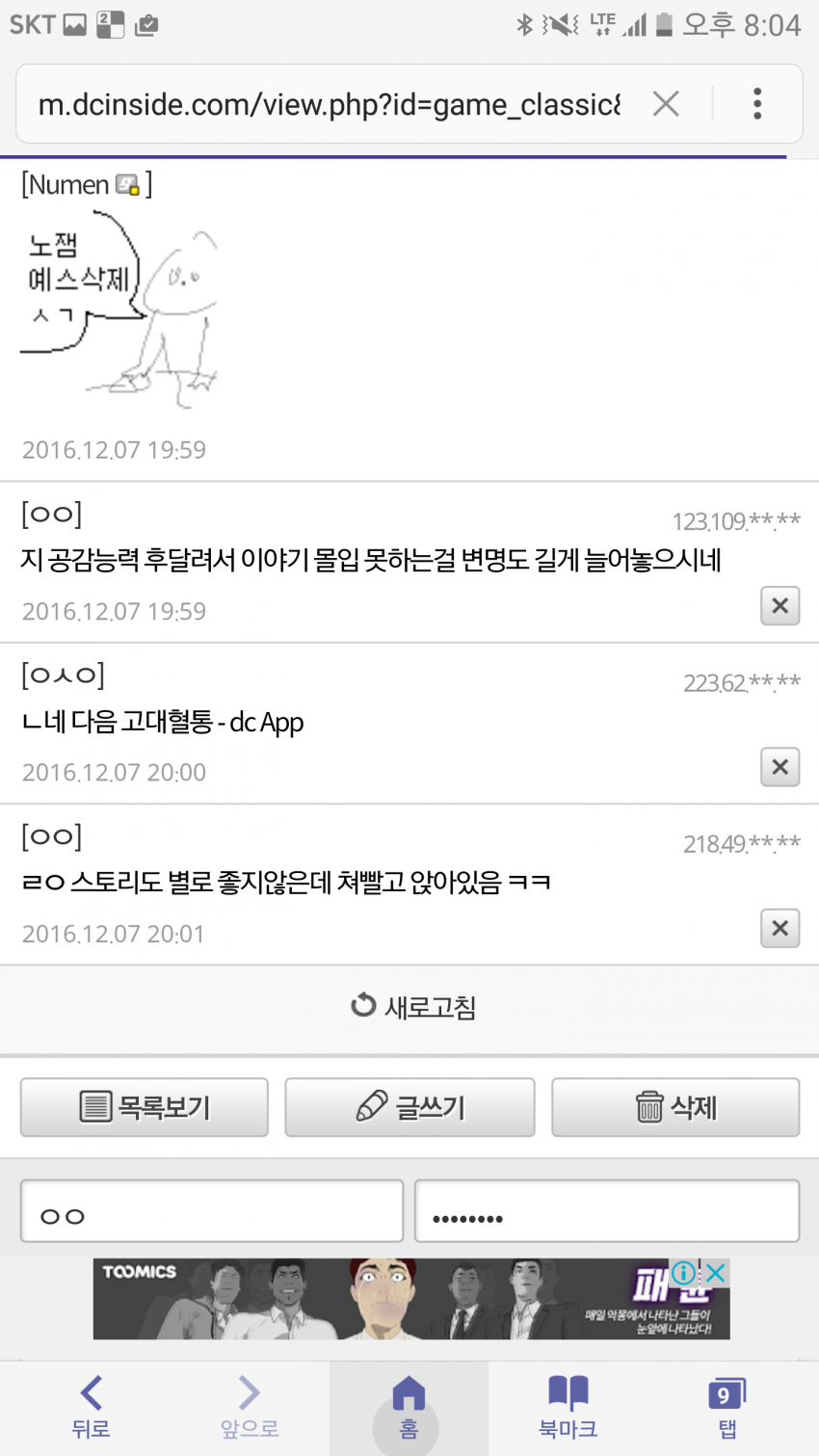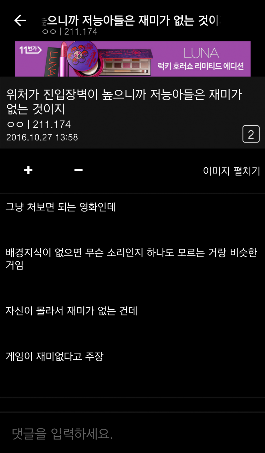 통피 몇명으로 일반화시키는데 이딴논리면 디시 내에 존재하는 게임팬덤이 다 병신이다. 자기들한텐 한없이 관대하면서 엄근진한 내로남불도 아니고,