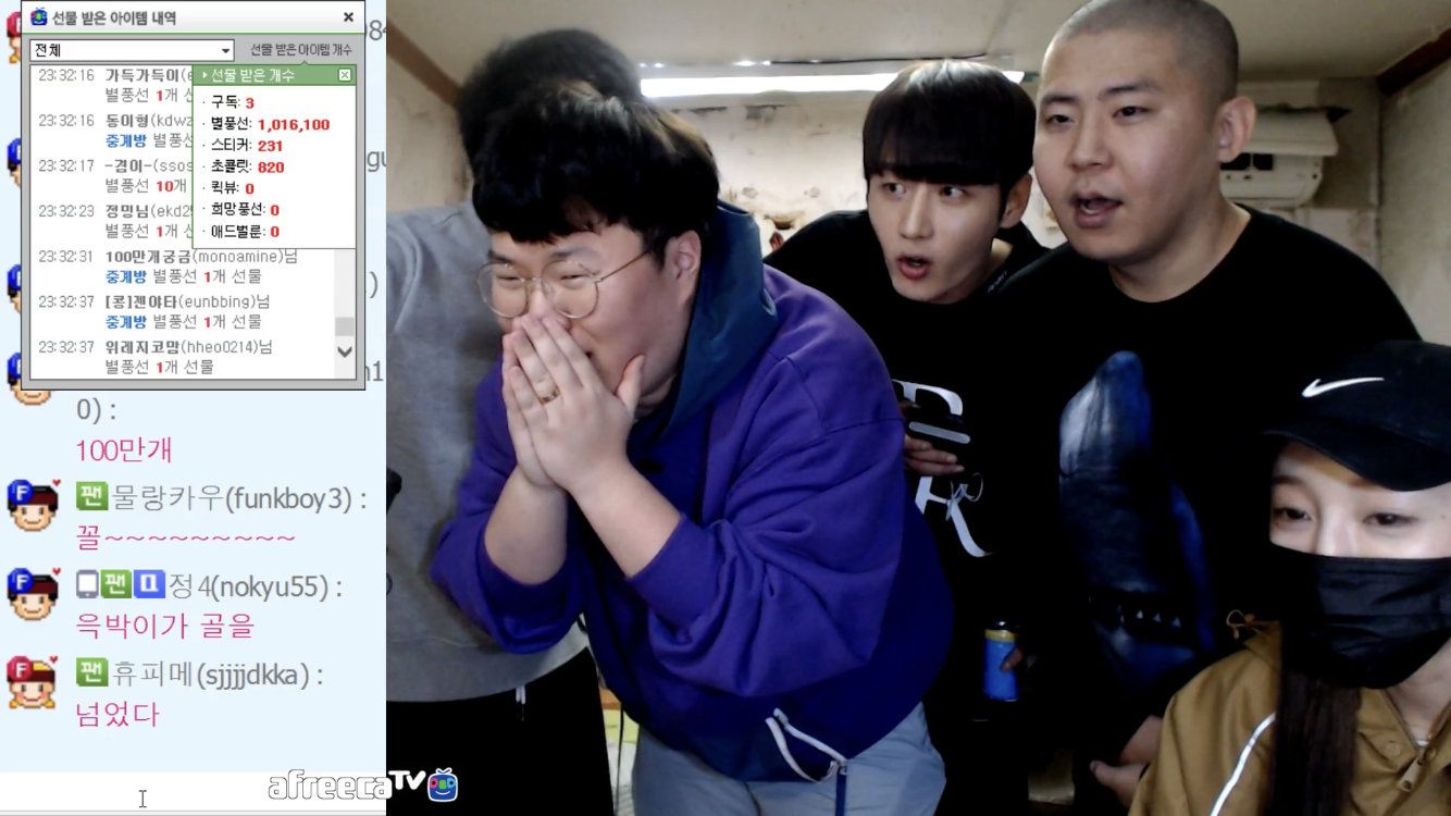 아프리카TV 최초로 하루동안 별풍선 100만개를 받았다.