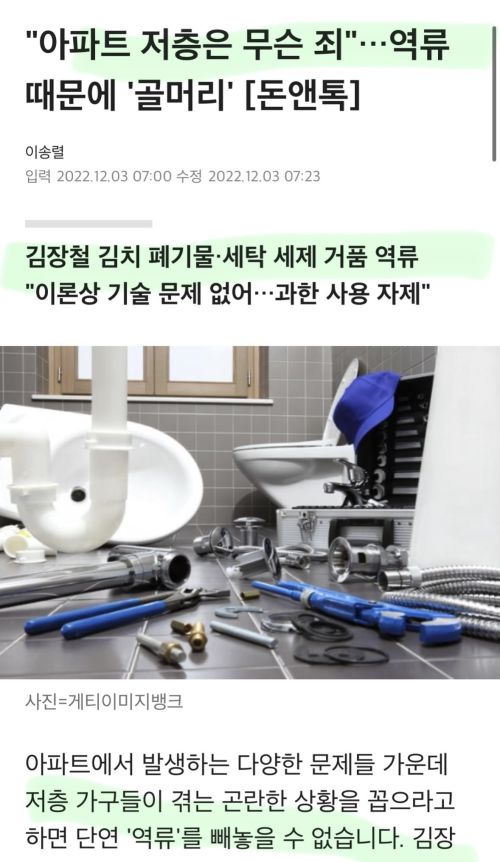 저층 아파트는 중간층과 고층에 비해 값도 싸거니와 정가에 내놓아도 드럽게 안팔리는데 주상복합 아파트를 제외하고는 사생활 침해 문제도 있으며 가장 결정적으로 배수관이 역류하거나 얼어버리는 현상이 1층포비아로 만든다.