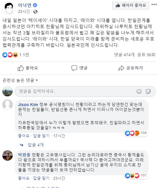 천황님이라는 존칭 표현으로 토착왜구스러운 모습을 보여주었다.