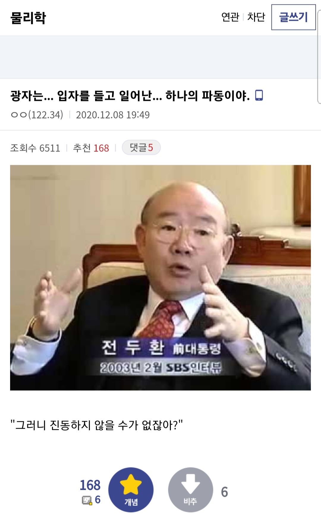 쿠데타 일으켜서 정권 잡고 광주에서 폭동을 벌인 제 11대, 12대 대통령 전두환이 2003년에 했던 발언이다. 디시인들은 엔두를 드립으로써 사용하니까 너무 화 안 내도 된다잉~