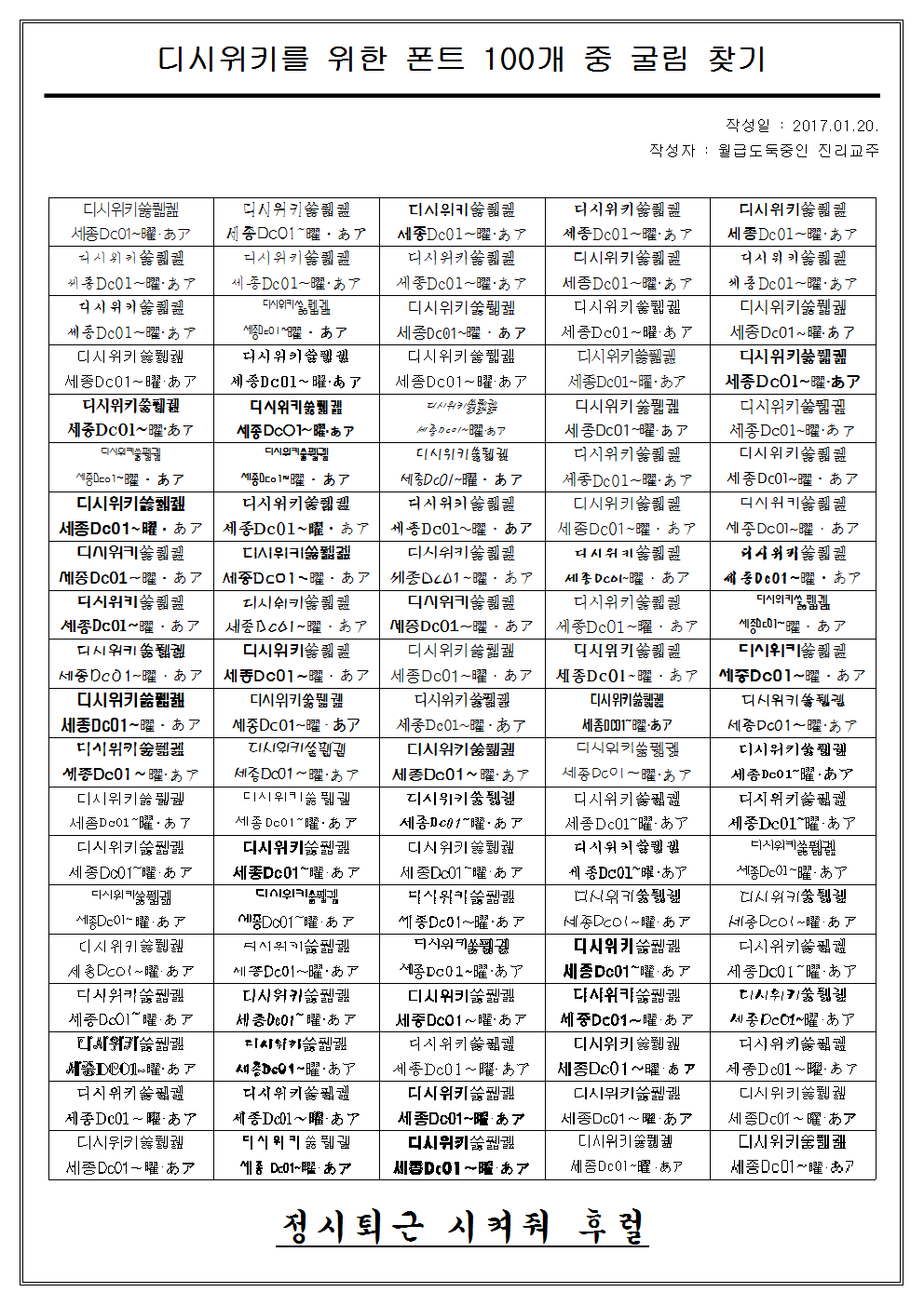 이 폰트를 사용한 ppt나 포스터를 보면 80% 확률로 암에 걸린다.
