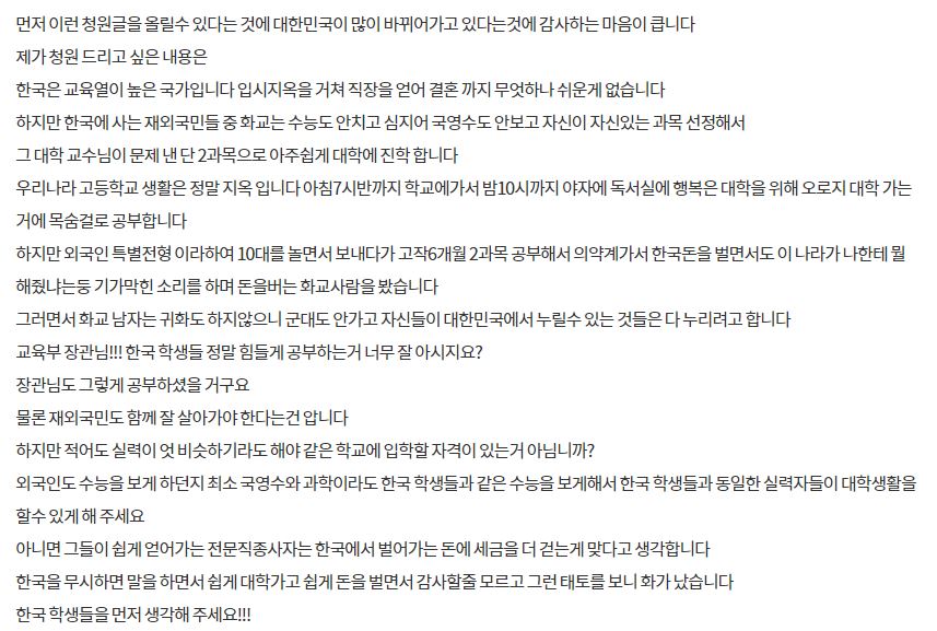 최근 화교특권을 폐지하자는 국민청원이 올라온바 있다.