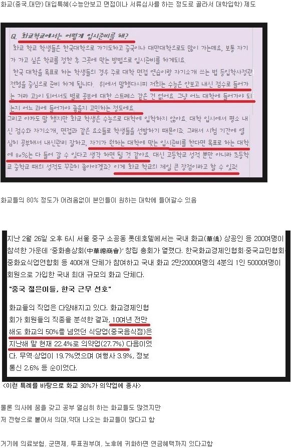 -화교 대입특혜(외국인전형으로 수능안보고 면접이나 서류심사정도만 해도 골라서 대학감)