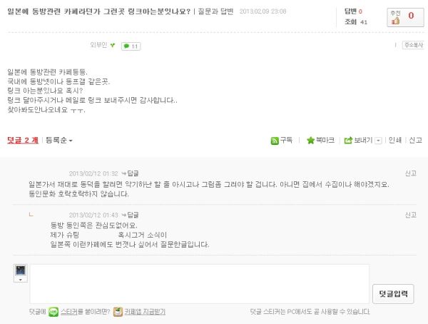 • 일본 가서 제대로 동덕을 하려면 악기 하나는 할 줄 아시거나 그림 좀 그려야 할 겁니다. 아니면 집에서 수집이나 해야겠지요. 동인문화 호락호락하지 않습니다.