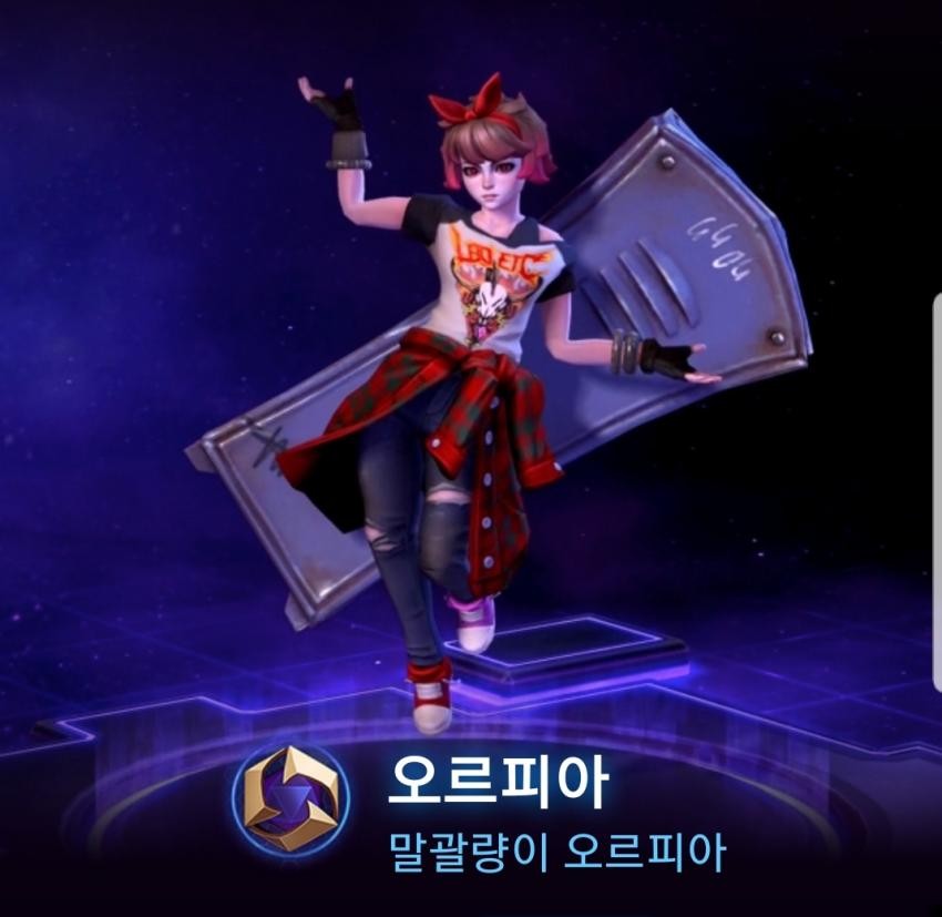 히오스의 신캐 오르피아에게 그의 상징과도 같은 체크무늬 셔츠를 빼앗겼다.