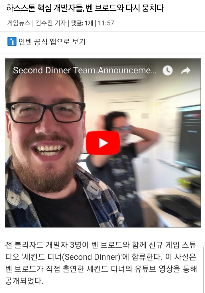 벤 브로드가 표면적으로 많이 알려졌기 때문에 많은 분들이 아쉬워하는 것을 알고 있다. 하지만, 하스스톤 게임 자체를 한 사람이 대표하기에는 너무 커졌다. 벤 브로드 이전에도 많은 개발자가 있었고, 그때도 팀원 모두 활발하게 활동했다. |