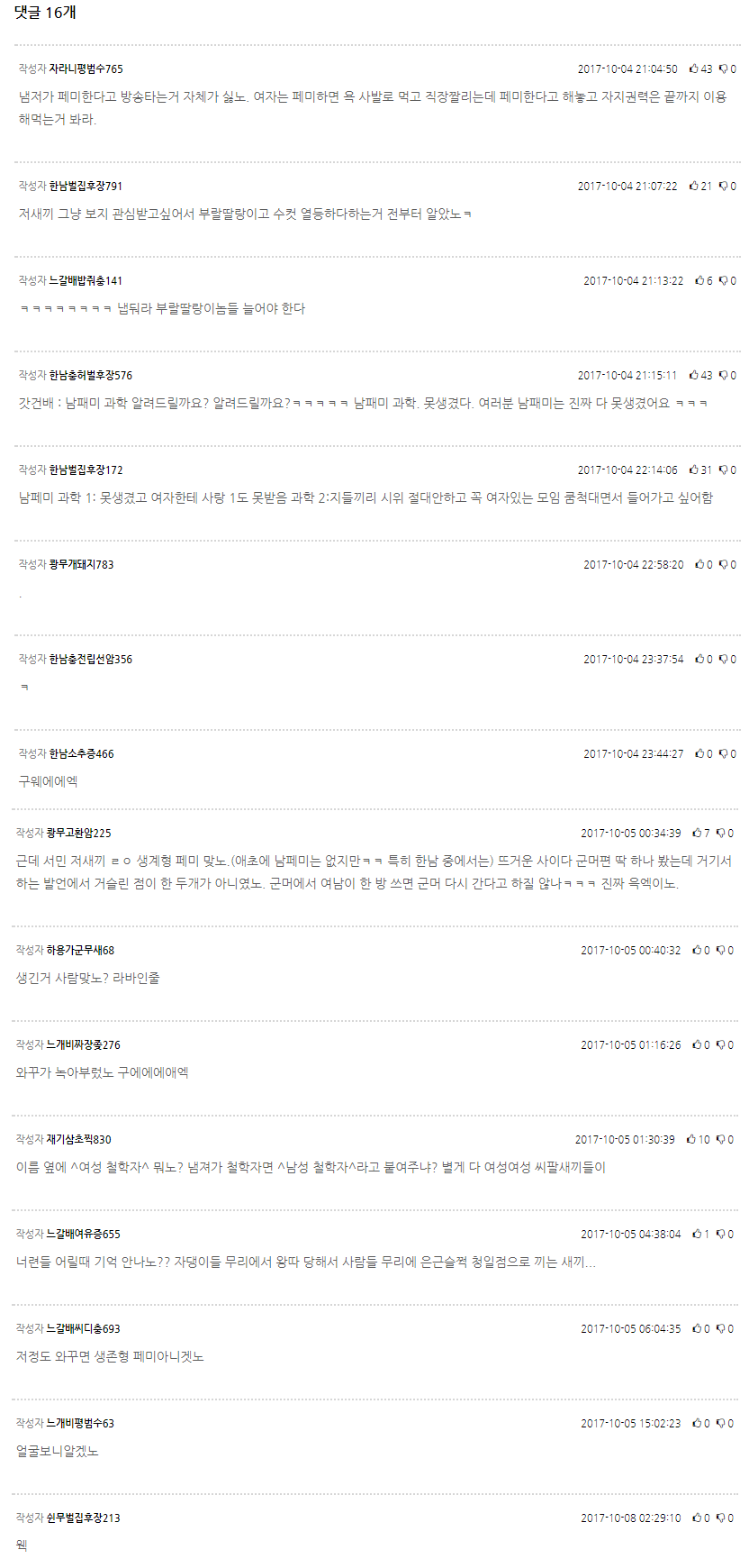 보빨한 보람도 없이 페미니스트들에게 버림받고 있다. 최근 문각기동대들을 까는 바람에 극딜당하고 있다.