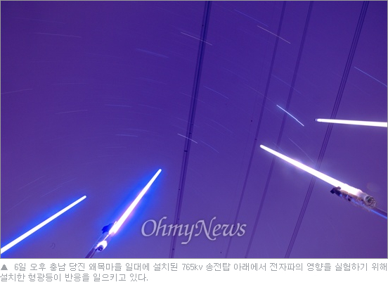 날조와 선동으로 먹고사는 분들이다. 사진만 보면 송전탑 때문에 유도전류가 생겨서 형광등이 무슨 광선검처럼 찍혔다. 하지만 하늘을 잘 보면 별의 일주운동이 찍혔다. 즉 장시간동안 셔터를 열어 빛에 존나게 노출시켰다는 뜻이다. 즉, 고의적으로 형광등을 밝게 찍히도록 연출한 것이다.