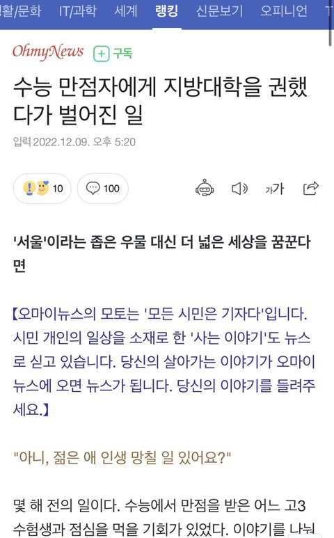 이젠 하다하다 수능만점자 학생에게 서울대 가지말고 지방대 가라고 했다가 까인 이야기를 기사로 내보내며 저놈들 깨시민 아니야 욕해줭 ㅠㅠ ㅇㅈㄹ을 하는 중이다.
