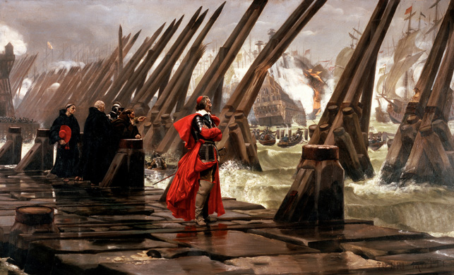 16세기 종교개혁 이후 프랑스에서도 신교도(위그노, 칼뱅파)와 구교도(가톨릭)의 대립은 극에 달했고, 결국 이는 위그노 내전과 1572년 성 바르톨로메오 축일의 대학살로 이어졌다. 1572년의 위그노 학살을 묵인한 당시 프랑스 왕 샤를 9세의 모후 카트린 드 메디시스가 시신들을 대수롭지 않게 바라보는 모습이 인상적이다.