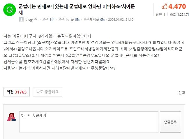 11. 가장 좆같은 건 얘때문에 공익으로 갈 수 있는 신검 4급 기준이 강화됐다. 이 새기때문에 진짜 골골거리는 병신들도 현역 간다.