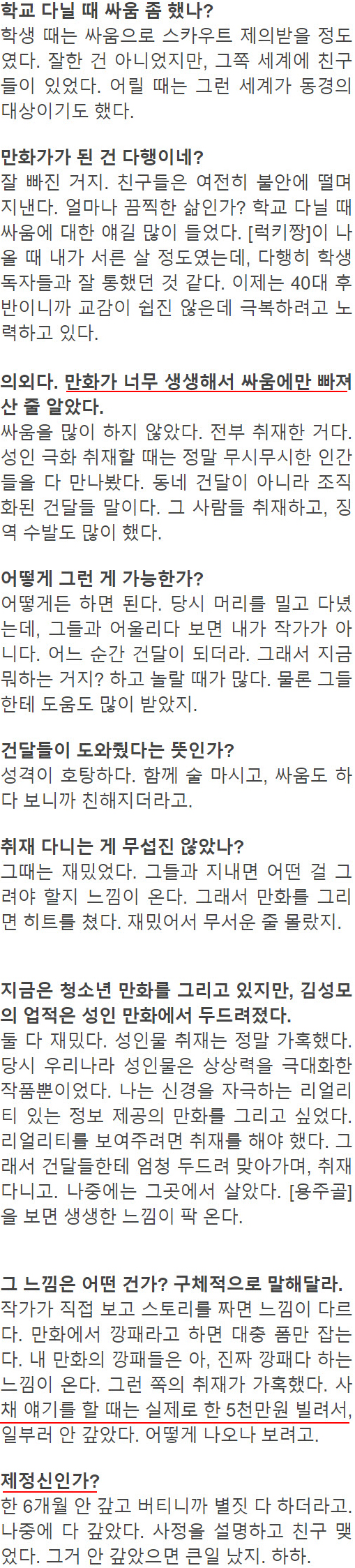 -김성모 「밀착 취재로 ‘리얼’하게 그리다」 중에서