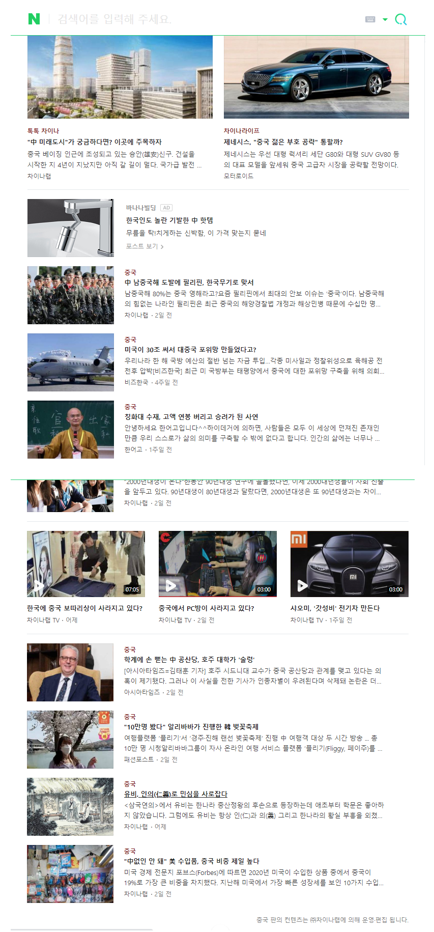 관심주제 항목에 중국이라는 항목이 따로 있다. 중국을 존나 빠는 듯 중뽕을 존나 처먹었는지 이상한 개소리나 지르고 있다. 네이버 블로그같은 곳 보면 중국 투성이다. 사실 네이버 최대주주 중 하나가 중국의 텐센트다. 근데 좆이버 매국노새끼들은 순수 100% 한국인으로만 구성되어 있다고 왜곡해댄다.