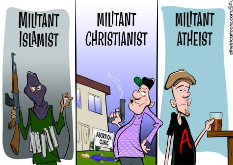 뭐 백번 양보해 그게 무신론의 범죄라 쳐도, 무신론 논란은 과거형에 가깝지만 과격한 종교원리주의자는 현재 진행형이다.