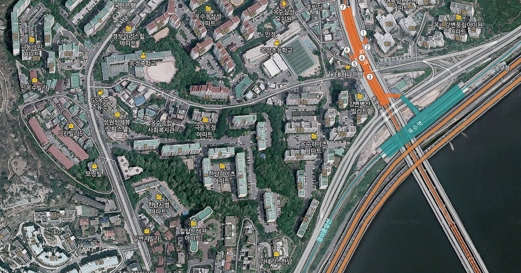압구정에서 건너온 3호선이 옥수동 금호동 상륙하는 스팟.