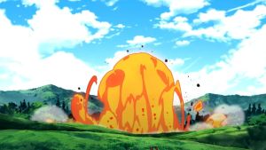 보라색 에너지볼을 대지에 주입하여 마그마를 조종한다.