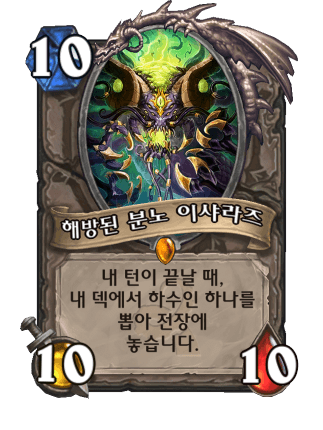 10코스트 10/10, 내 턴이 끝날 때, 내 덱에서 하수인 하나를 소환합니다.