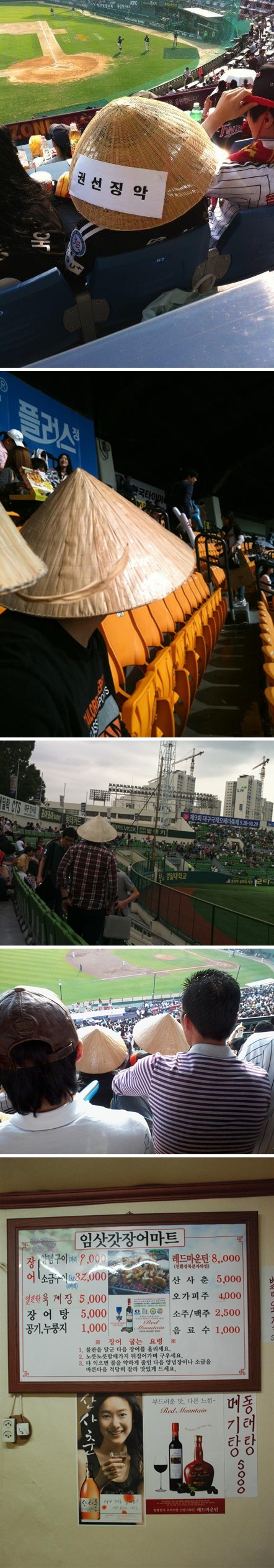 많은 팬들이 임삿갓을 쓰고 임태훈 선수를 응원하고 있다. 네? 삿갓이요?