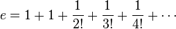 무리수이기때문에 항은 무한히 나올태고 다 더할순없으니 적당히 몆번 전개해서 더하면 2.71xxx 가 나온다
