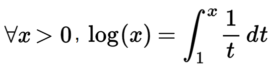 예를 들어서 log(2)는 1/x와 x축 사이의 x=1부터 2까지의 면적이다.