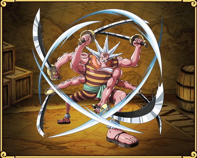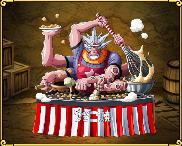 처음에 아론 해적단일원으로 나미년 괴롭히는 역할로 나오다 샤봉디 제도편에서 용서받고 친해졌다.