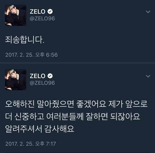 팬들의 반응을 모를리가 없는 젤로는 문제의 트윗을 올린지 2시간이 채 지나기 전에 사과 트윗을 올렸다.