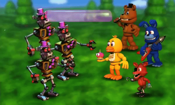 등장하는 캐릭터에 대해 알고 싶다면 프레디의 피자가게/애니마트로닉스 여기로. 용량이 존나게 크니 갑툭튀.gif는 가급적 넣지 말자.