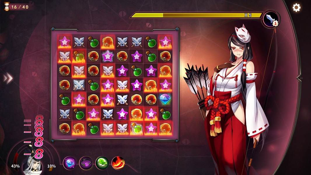 이 밑부턴 DLC구역의 캐릭터다. 하지만 DLC가 없는 사람도 마사를 깨고 나면 해금되는 도전 모드에서 아래 네 명을 포함한 열 두 명과 스토리 없이 4단계 급 난이도로 대전할 수 있다. DLC구역은 캐릭터가 전부 해금되어있지만 템없는 초반에 들어갔다간 빡센 난이도때문에 광탈하니 템좀 산 다음에 가자, 남쪽에 위치한 캐릭터로 난이도는 마사보다 할만하지만 4단계는 좀빡세다 물론 뒤에 언급할 두 로리들에 비하면 거의 데이지급으로 쉽다만 조심은 하자 스킬중 화면이 흐려지며 템 사용을 막아버리는 스킬이 시전될 수 있는데,이때 체력포션에 의존하던 사람들은 상황이 개같아진다.재갈을 준비해서 가자.