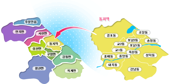- 성덕동 - 인구는 28,000명대로 현재 강릉시의 읍면동 중에서 인구가 제일 많다.