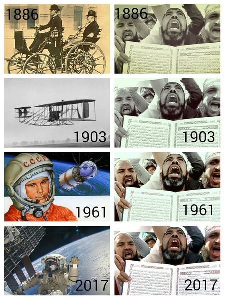 이미 주장하는 꼬라지가 개독을 넘어섰다. 예시로 사우디는 국가적으로 지동설을 부정한다. 태양은 움직인다는 쿠란 구절이 있기 때문인데, 코페르니쿠스 아재가 들으면 관뚜껑을 부술 일이다. 태양은 은하계 중심을 돌기 때문에 굳이 저지랄 안 해도 되는데, 지도층이 병신이라 애먼 지동설만 깐다.