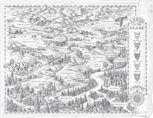 2부 4권에서 새 지역을 찾아서 정착한다. 북쪽에 천둥족, 북서쪽에 그림자족, 동쪽에 바람족, 남서쪽에 강족.