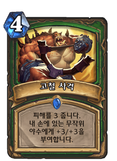 4코, 피해를 3 줍니다. 내 손에 있는 무작위 야수에게 +3/+3을 부여합니다.