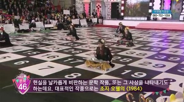 개뿔 사실 안읽어도 1번부터 10번까지 개쉬워서 초글링도 맞춘다. 간혹 방송보며 난 고딩인데 저런걸 모를까 하는데 방송으로 나가는것은 존나 어렵게 묘사한다. 어렵다해도 노답 사회자가 답다 가르쳐준다. 그리고 응원제때 안하면 PD년이 발정나는지 야 이 씨발롬들아 응원안해? 하고 개지랄떤다.사회자도 애들이 잘 못하면 너희들 존나 무식하네 라고 지랄떤다. 관심이 필요한가보다