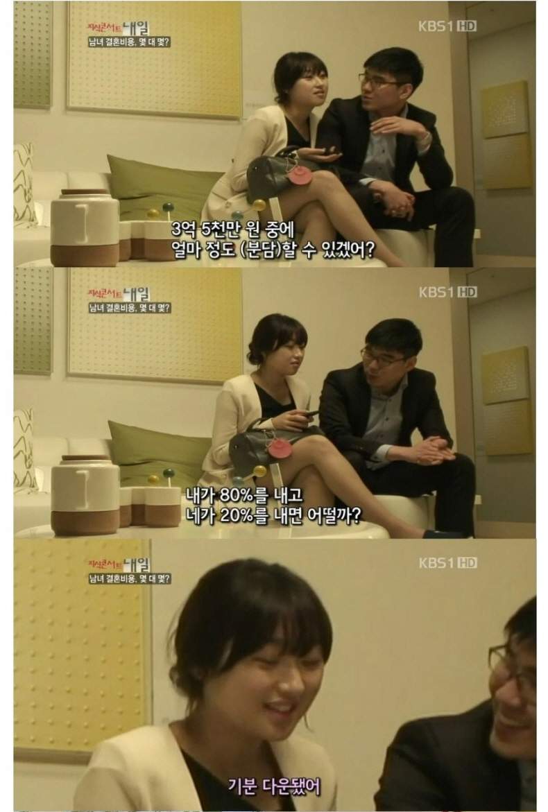 겨우 28살의 나이때 무려 2억8천을 부담할 능력을 가진 남성과 결혼을 하는데 자신에게 7000만원만 부담하라고 말하는 남친한테 너무나도 미안해져서 기분이 다운됐다고 하는 (무)개념녀이다.