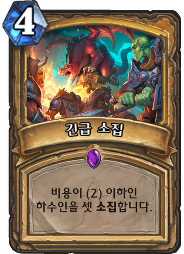 4코스트이며 효과는 2코스트 이하 하수인을 셋 소집합니다.