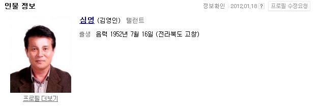 진짜 배우 이름을 심영으로 바꿔놨었다. 김영인은 본명 처리함, 역시 네이버 크~