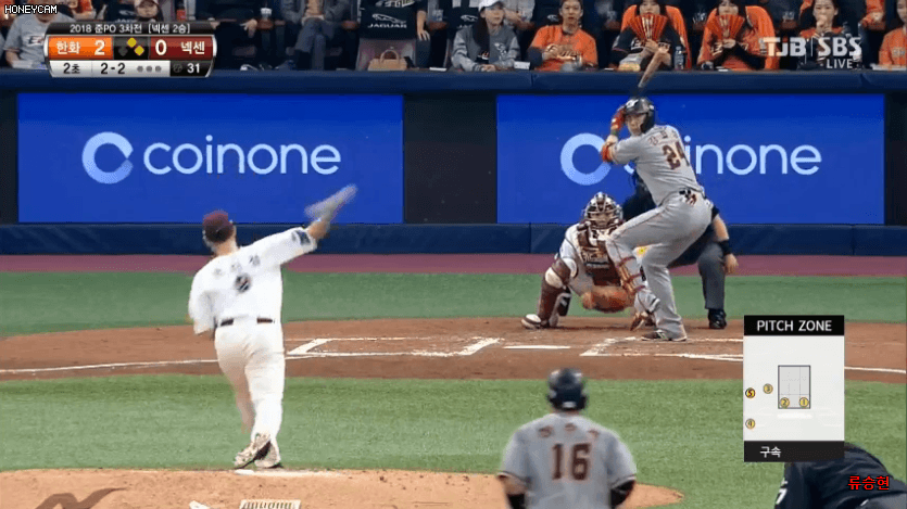 체공시간이 겁나 길어서 뜬공으로 끝나나 싶었는데 생각보다 멀리 날아가서 펜스 맞고 떨어지고 좌익수도 펜스 플레이 실패해 대량득점으로 이어짐. 작년 공인구였다면 끝내기 만루홈런이 됐을지도.
