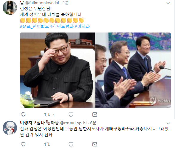ㄴ아니 어떻게 인권유린하고 자기 가족도 아무렇지 않게 죽인 놈인데 회담 좀 했다고 바로 이미지가 바뀌지? 평화도 좋지만 두고 봐야 하는 문제 아닌가?