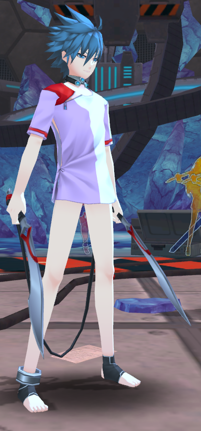 특이하게도 바지를 입고있지 않고 옆구리가 뚫려있다. 이는 빠른 섹스(바텀 전문)를 위한것이다.